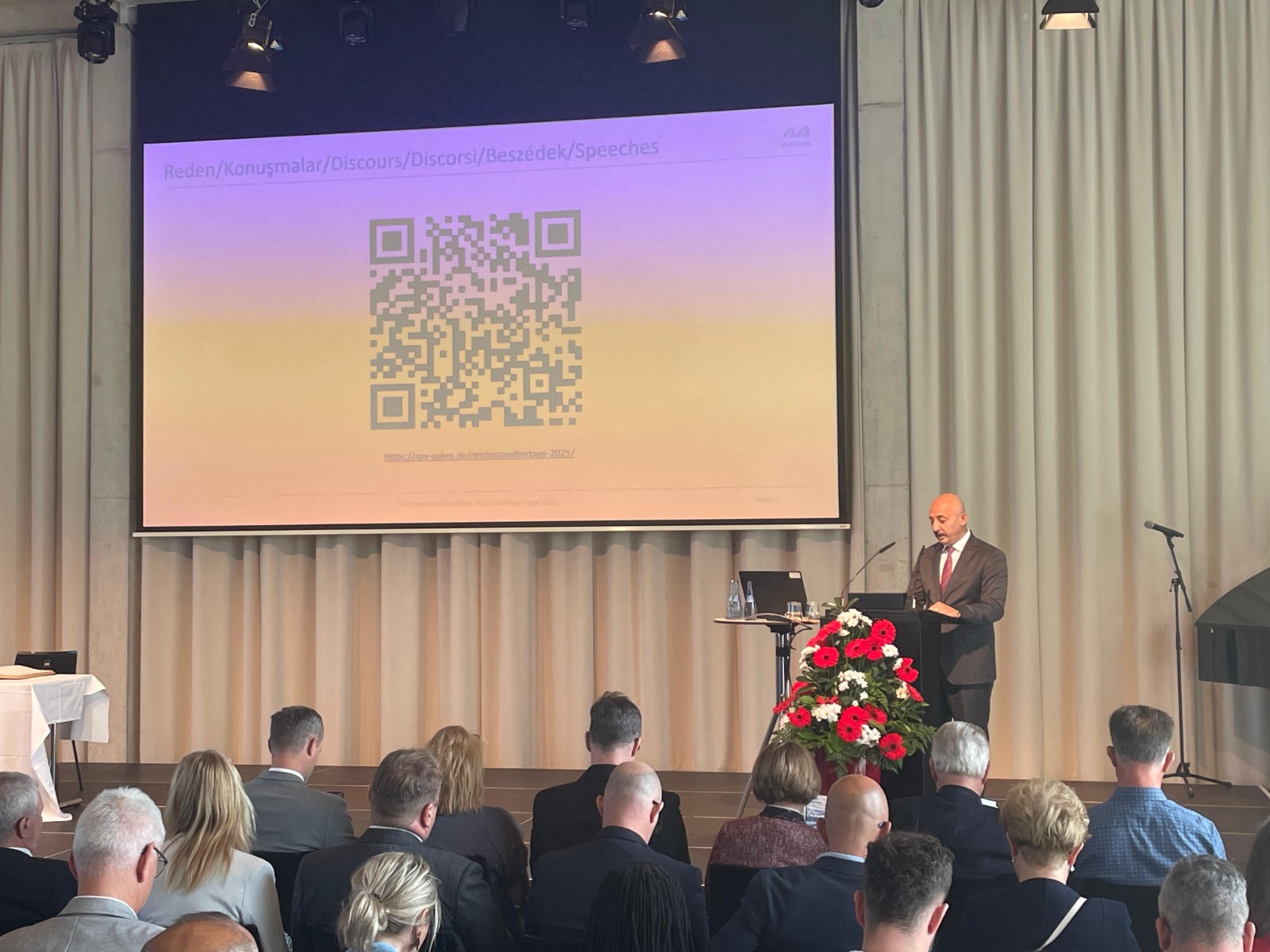 Festivalde konuşma yapan Genel Sekreter Yardımcısı Gökhan Yıldırım, 6 Şubat depremlerinin ardından Aalen’in desteğini ilk andan itibaren yanlarında hissettiklerini belirtti.