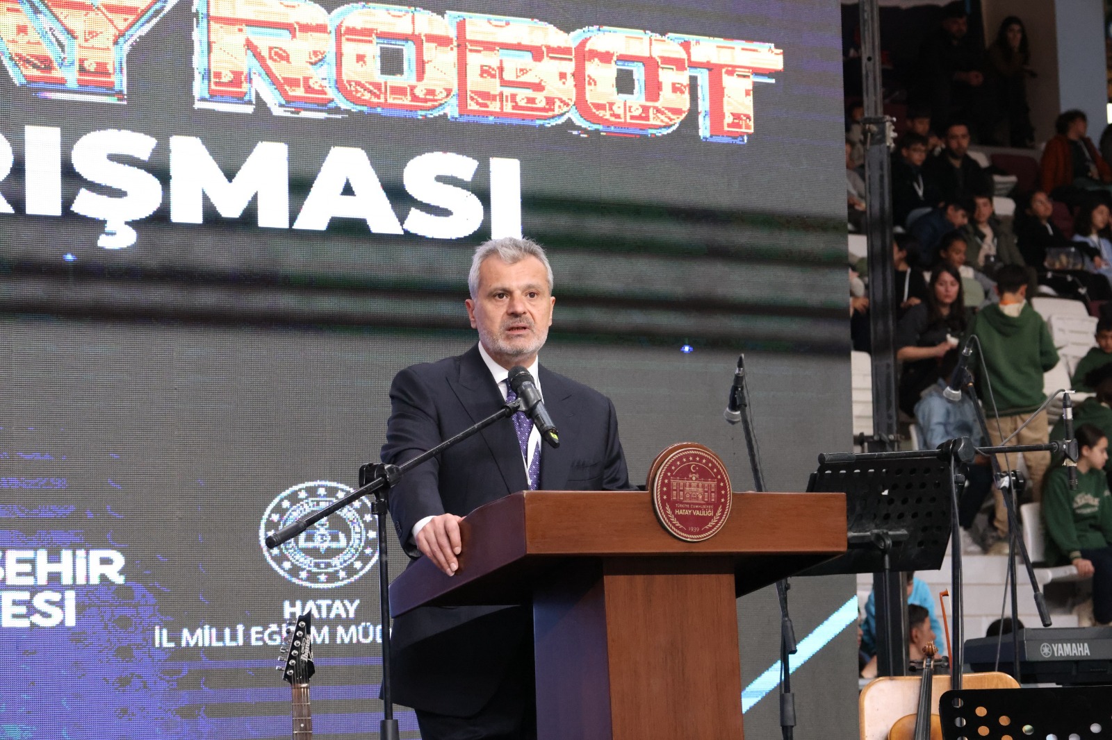 Saygı duruşu ve İstiklal Marşı’nın okunmasıyla başlayan törenin açılış konuşmasını yapan Hatay Valisi Mustafa Masatlı, 6 Şubat 2023’teki depremlerin ardından Hatay’ın sadece bugüne değil geleceğe de hazırlandığını kaydederek, Hatay Valiliği koordinesinde gerçekleştirilen yarışmada öğrencilerin ‘Türkiye Yüzyılı’na yakışır projeler üretmesinin mutluluk verici olduğunu söyledi.