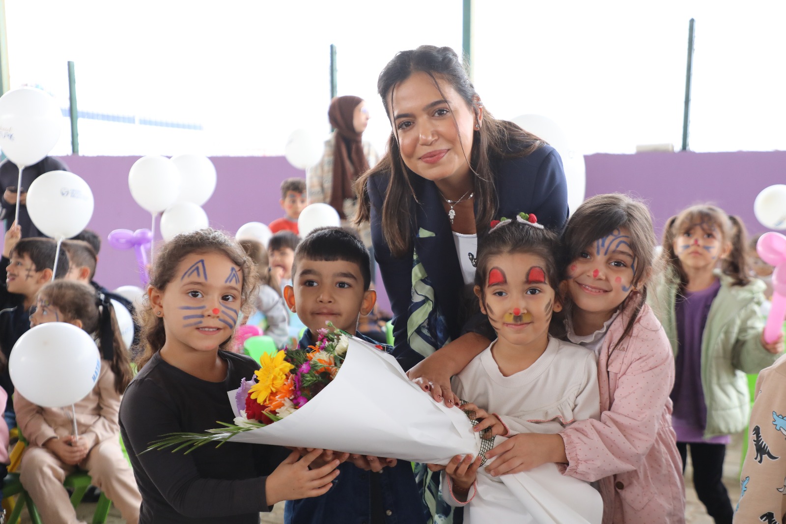 HBB ekipleri tarafından yüzleri boyanan ve balon hediye edilen çocukların mutlulukları yüzlerine yansıdı. Okul idarecileri bu güzel etkinlik dolayısıyla Büyükşehir personeline çiçek hediye etti.