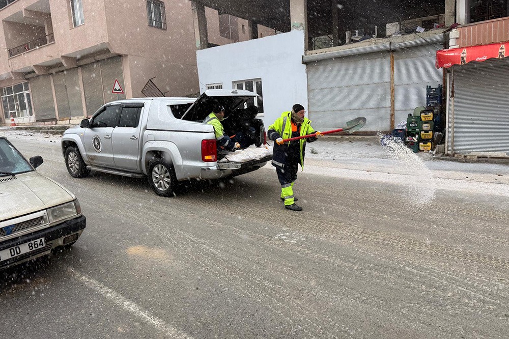 Ekipler, iş makineleriyle kar küreme, buzlanmaya karşı tuzlama ve kapanan yolların açılması çalışmalarını sürdürüyor.