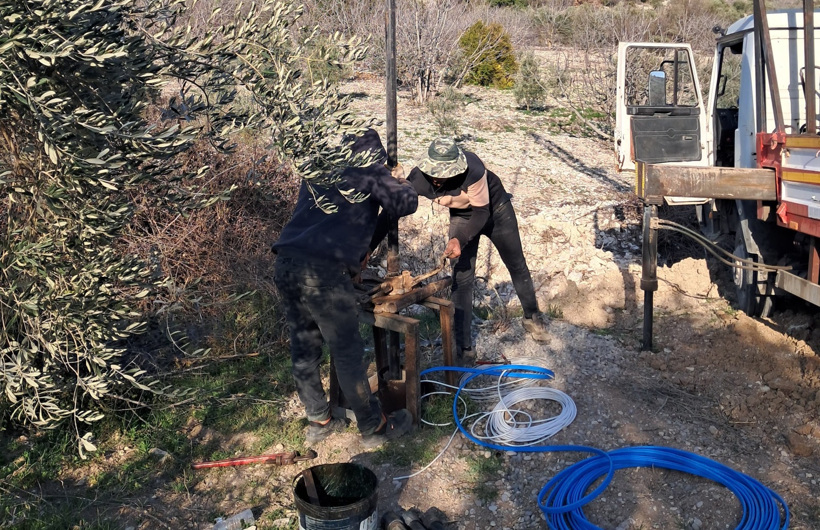 Ayrıca kuyuların pompa ve pano elektrik bağlantıları tamamlanırken, sistemin kesintisiz çalışması için 450 metre uzunluğunda enerji nakil hattı çekildi.